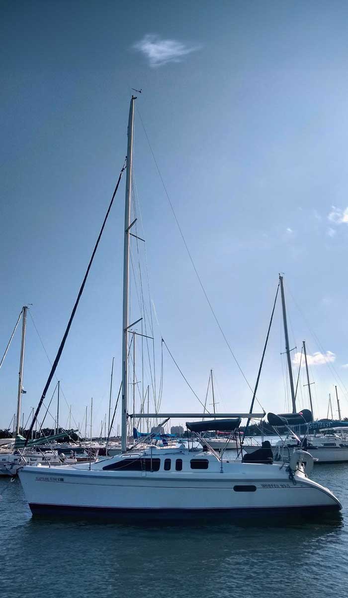 Hunter 29.5 is a full-featured sailboat installed with premium quality hardware. It uses auxiliary power in a Japanese Yanmar inboard diesel engine; it is accompanied by a separate fuel tank that holds 20 US gallons of fuel. It sports an average Performance Handicap Racing Fleet (PHRF) of 189, a high of 198, and a low of 183. The length overall (LOA) of Hunter 29.5 sailor is 29’6” while the waterline length (LWL) is 25’3”.